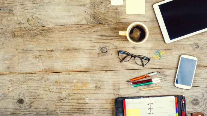 木桌背景与手机和notebo模板 Postermywall